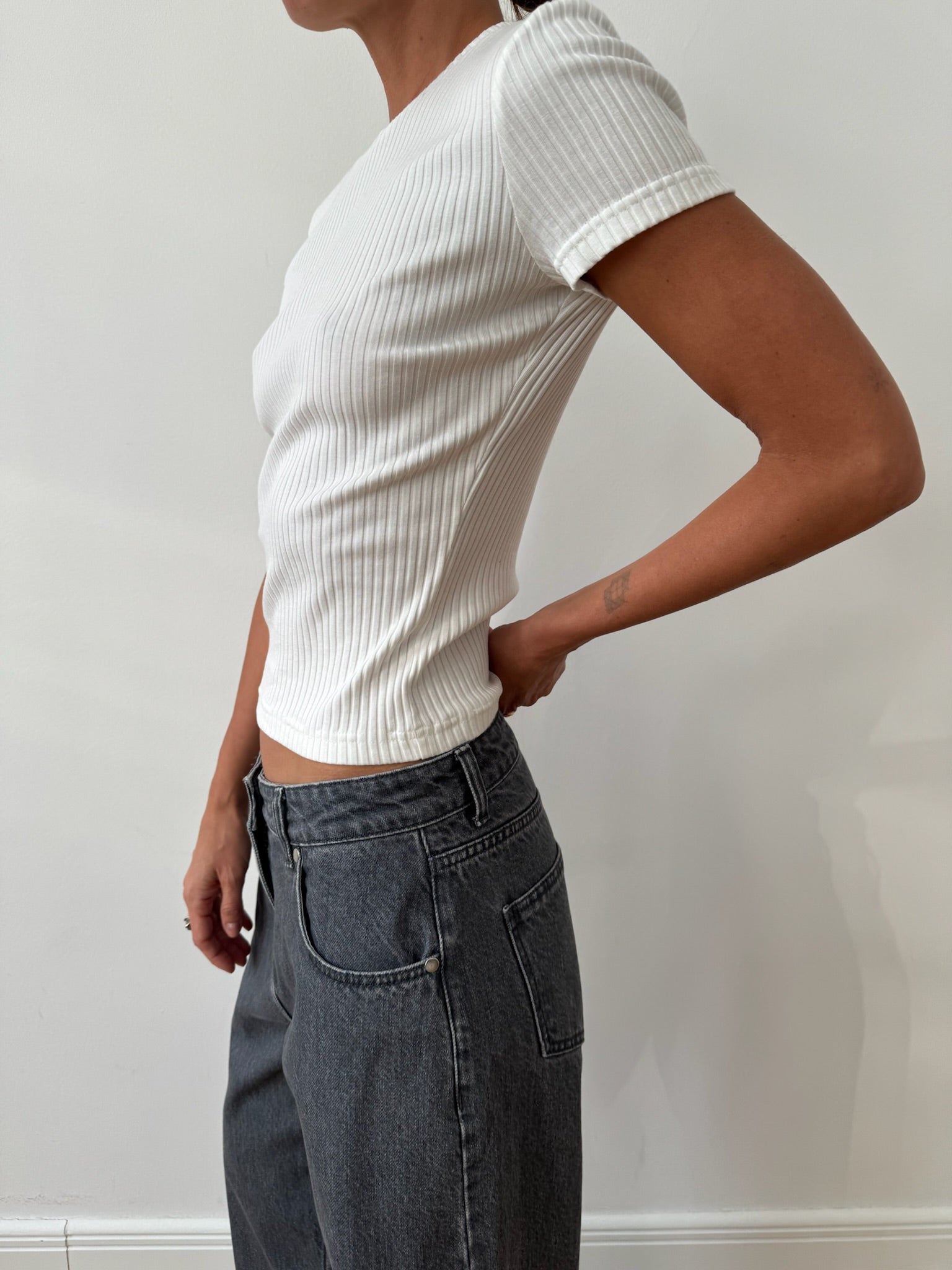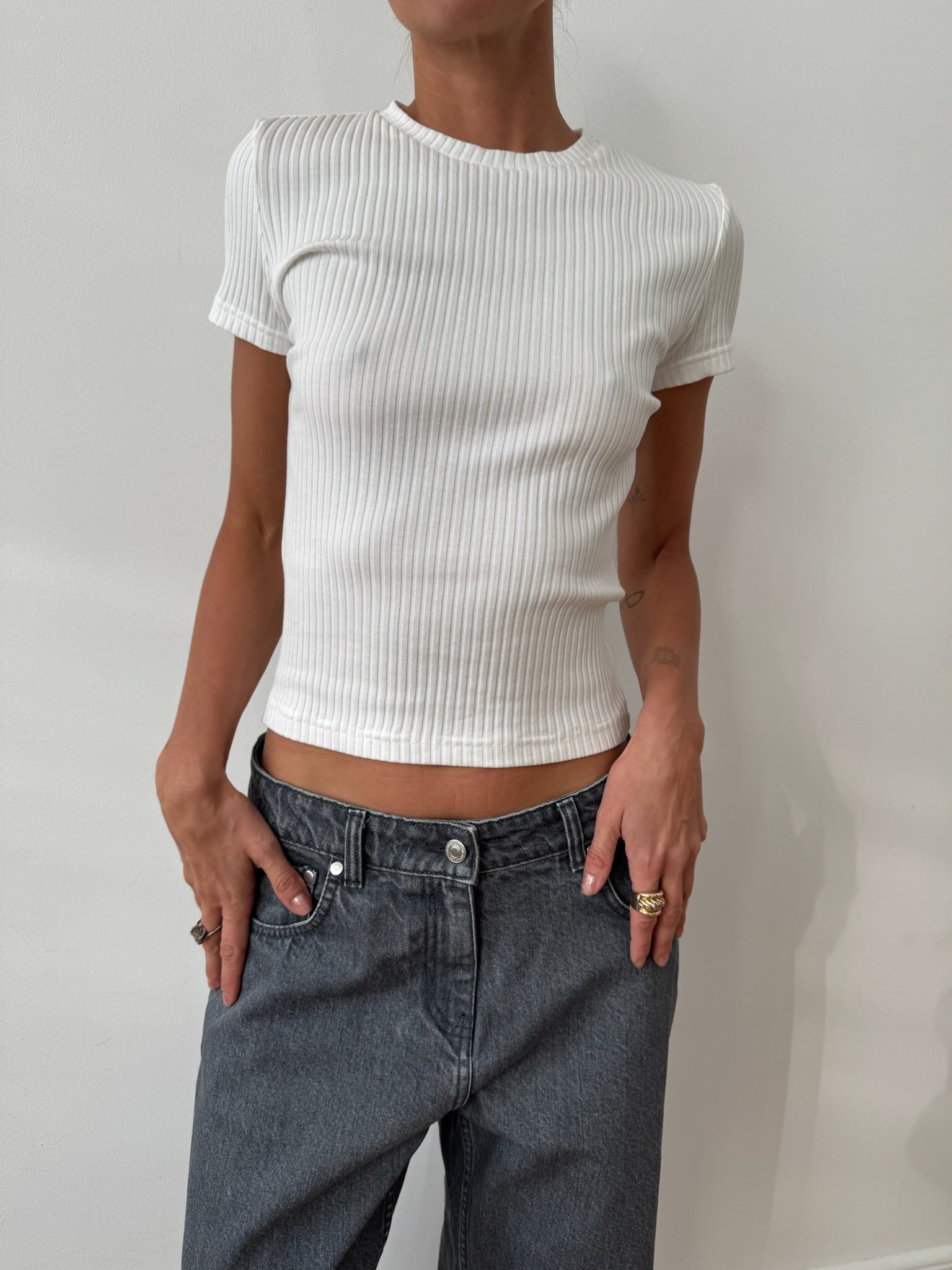 TEAM is a classic T-shirt with a ribbed texture, made from a substantial cotton-modal jersey – the very same fabric you know from our iconic GOOD ONE model. The material drapes beautifully on the body, retaining its shape and exceptional softness throughout the day. Thanks to its timeless white color and distinctive texture, the T-shirt serves as a versatile staple – from everyday pairings with your favorite jeans to elegant combinations with the TAME blazer.