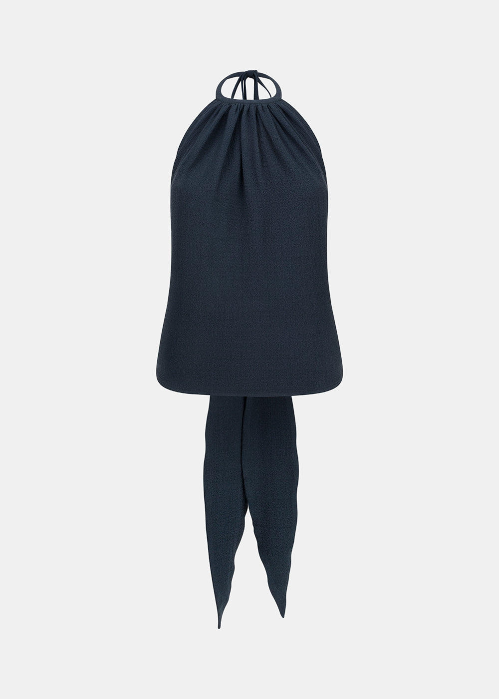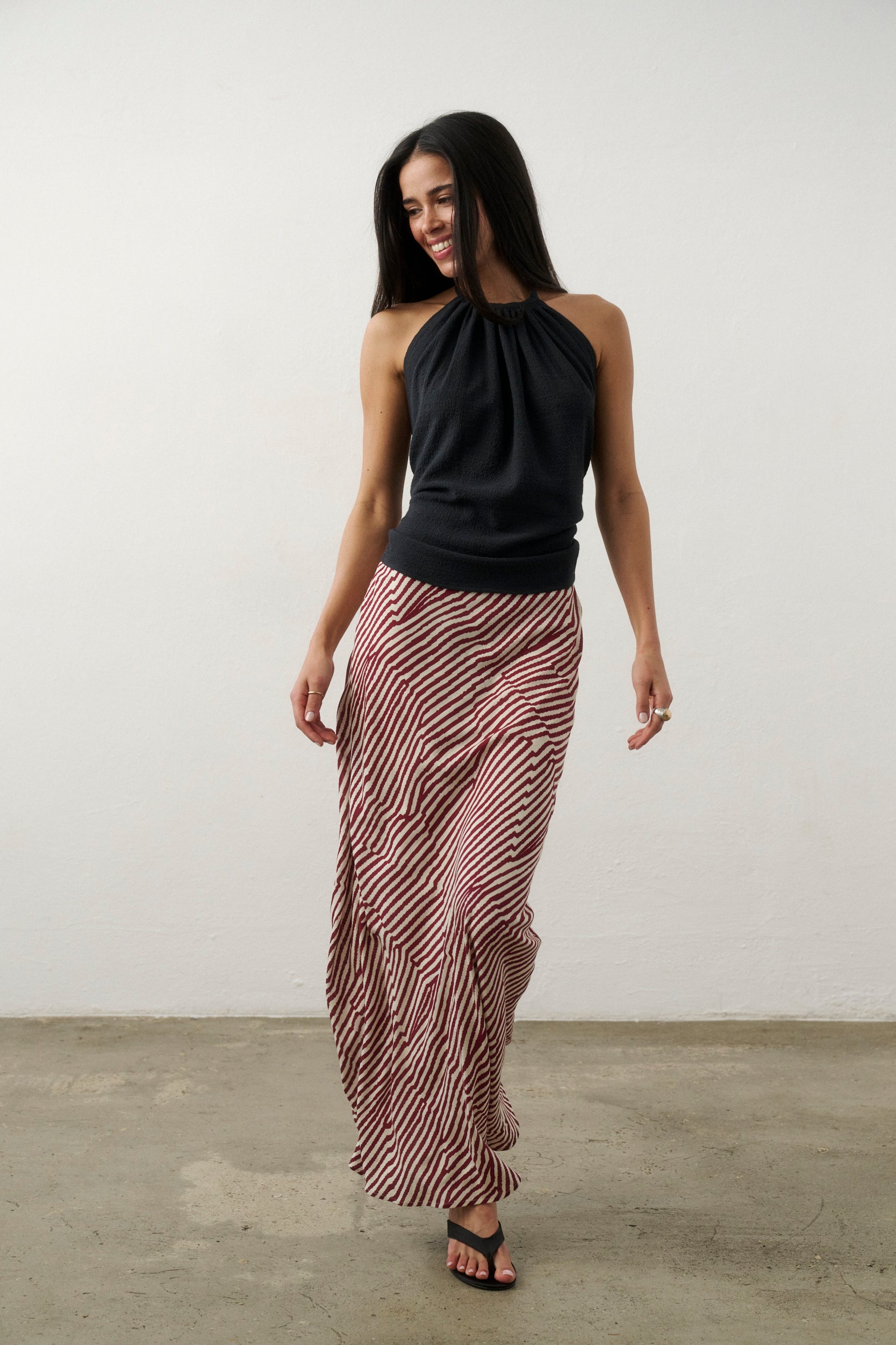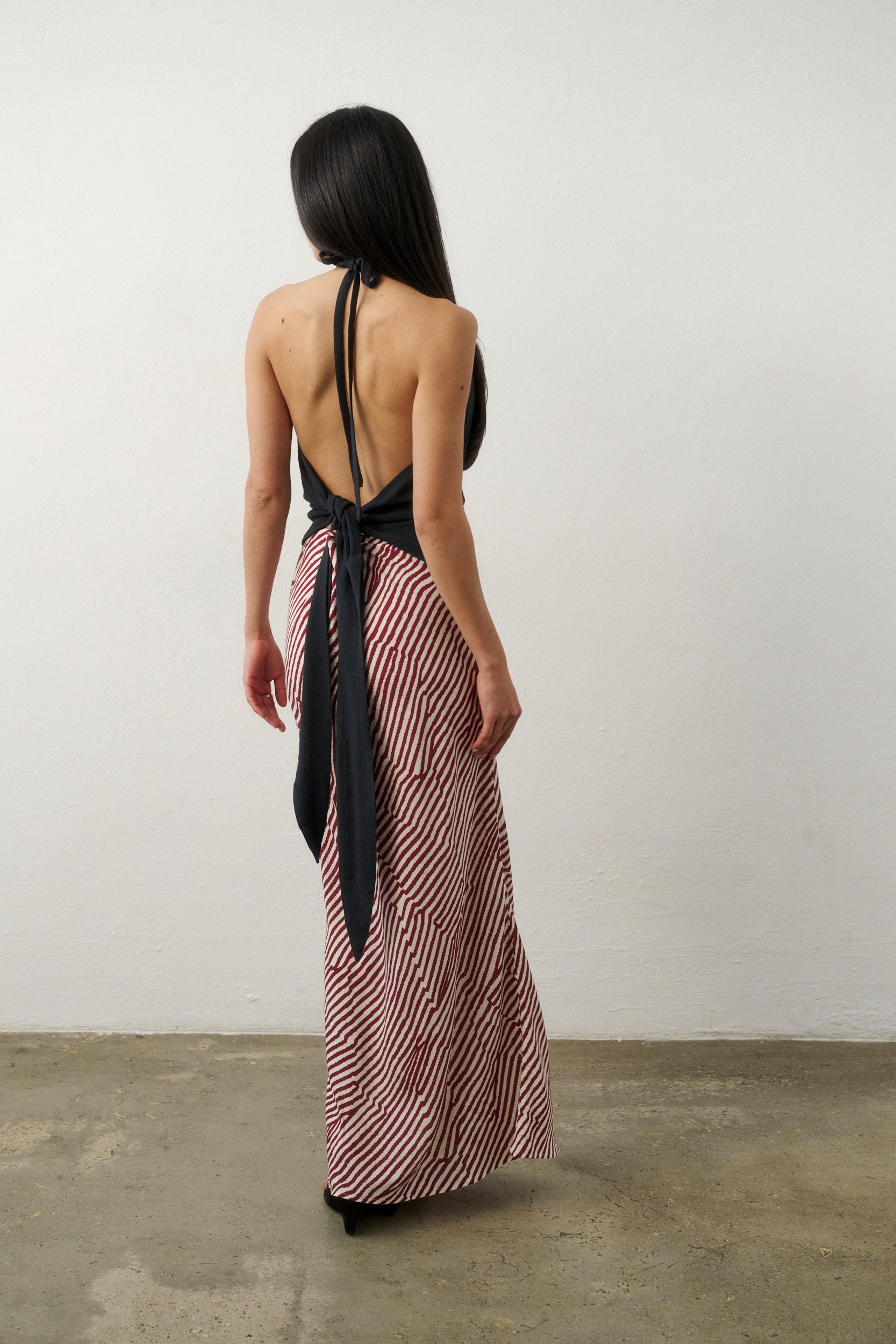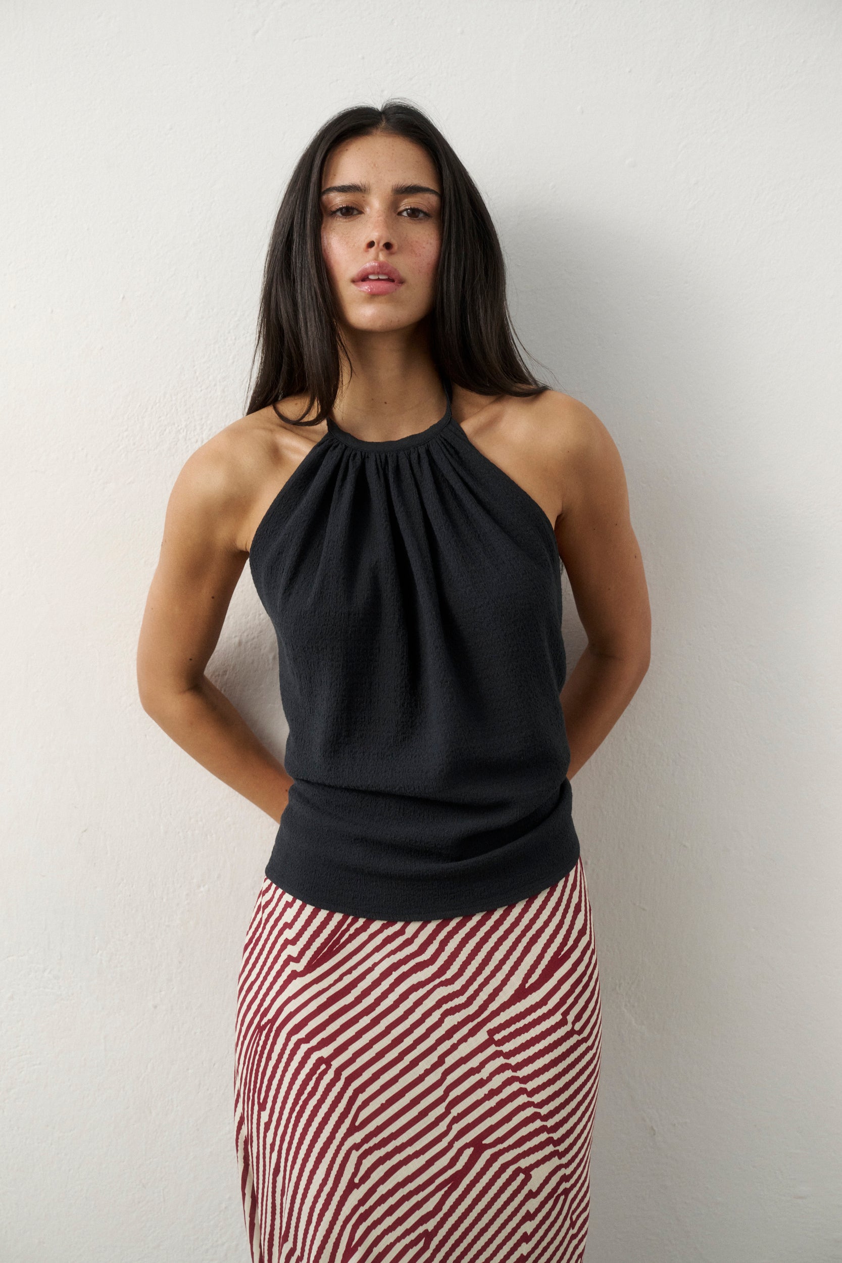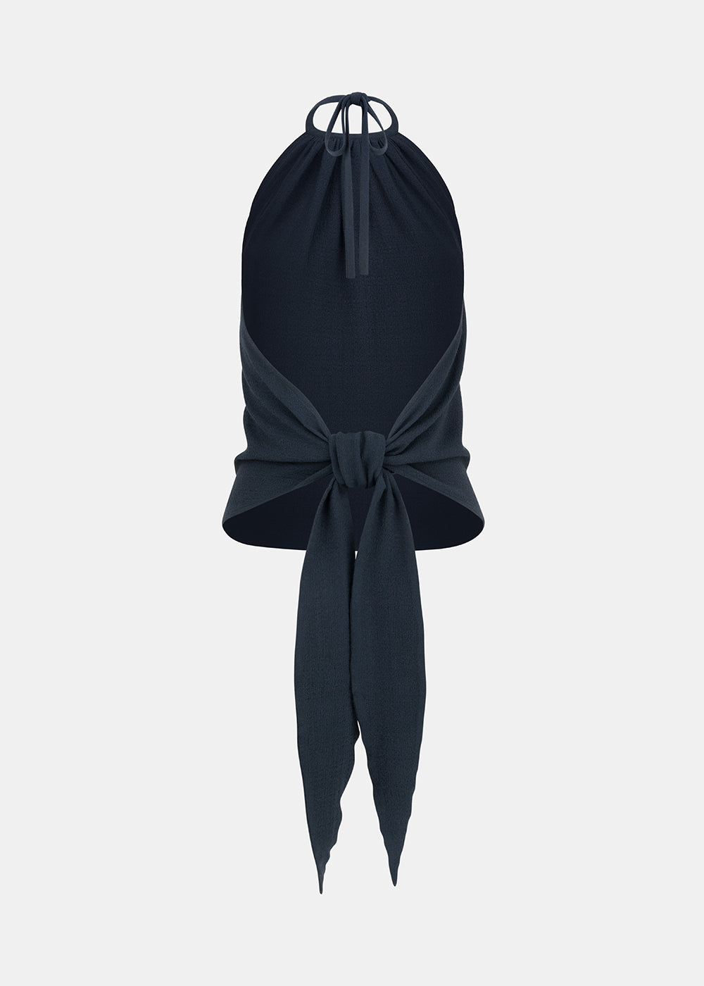 Subtle yet full of character – the Rays Top defines sensuality in The Odder Side’s signature style. This short, fitted top is crafted from a unique fabric blend of rayon, viscose, and wool. The minimalist front beautifully frames the shoulders, setting the stage for the most intriguing design element hidden at the back. A deep open back boldly reveals the silhouette, while delicate ties allow for a perfect, adjustable fit. A fine, thin halter strap stabilizes the structure, while the lower part of the top flows into a long, elegant sash that wraps sensually around the waist. The Rays Top is a base designed for evening experimentation – pair it with our MARIE MAXI skirt to create a cohesive, strikingly feminine silhouette.