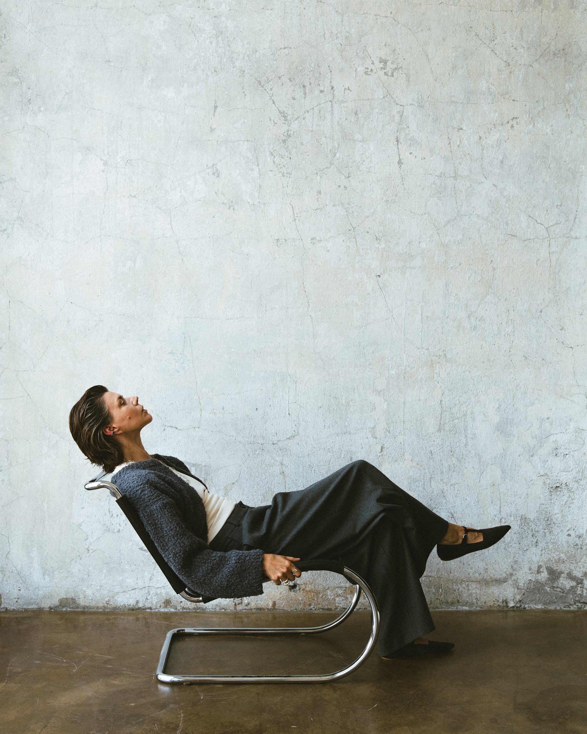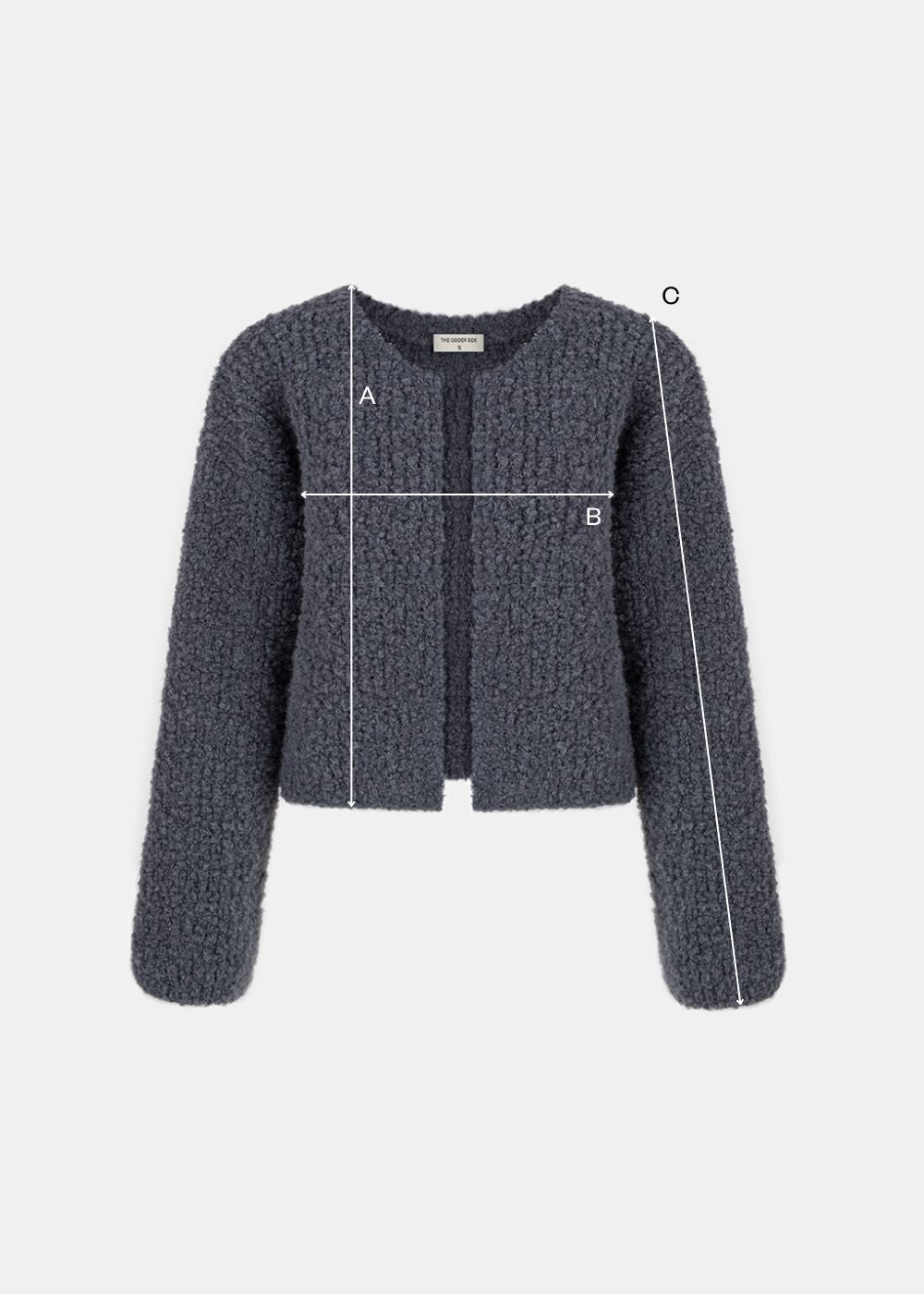 The well-known and popular NEURTRA cardigan returns this season in a new graphite colour. It is made of soft bouclé yarn, which is a combination of superfine alpaca, merino wool and polyamide. Its relaxed fit, versatile colour and minimalist design make it easy to combine with other styles. The bouclé yarn and ribbed weave give the jumper an interesting final texture that is soft and pleasant to the touch. NEUTRA is the perfect choice for those who appreciate a casual yet stylish look. Great for wearing as a cover-up over a basic T-shirt, top or bodysuit. Pair it with GABLE trousers, ELAN trousers or SILVERSTONE jeans to create the perfect everyday look.