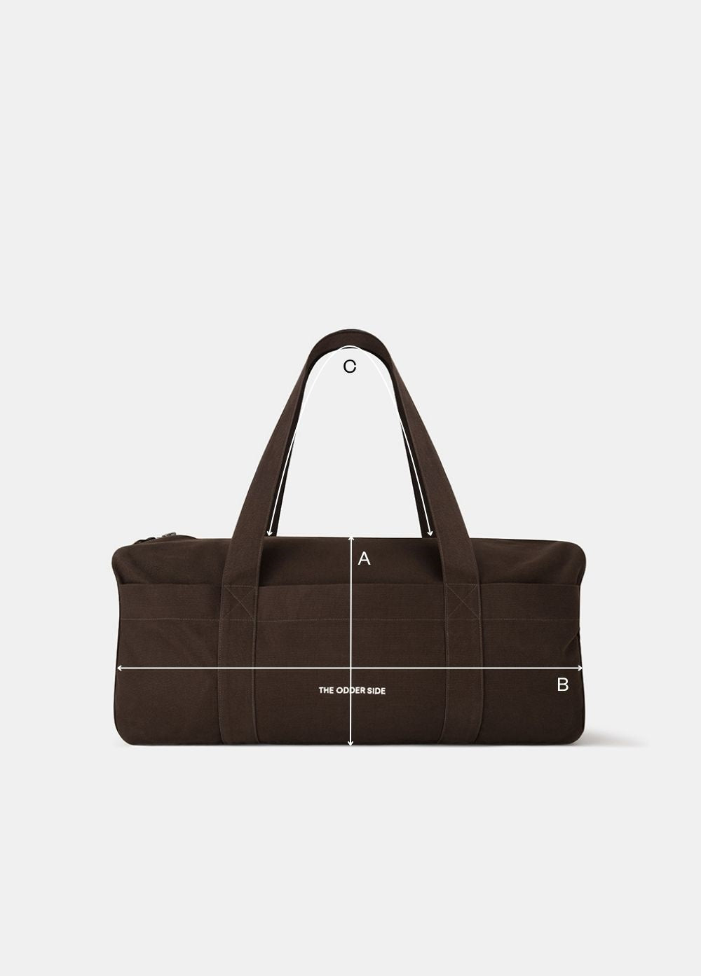 THE ODDER SIDE training bag is a practical accessory for everyone. Perfect for the gym or a weekend trip. Handles made of the main material, zip fastening, external pockets and the possibility of adjusting the volume with a zip make it an extremely functional item that you can adapt to your needs. Made of brown cotton canvas, without stiffeners, it is easy to care for by gently washing it in the washing machine. It has an ecru embroidered logo on the front. It goes well with the brown ANDY fitness set as well as other, more casual models from the current autumn-winter collection.