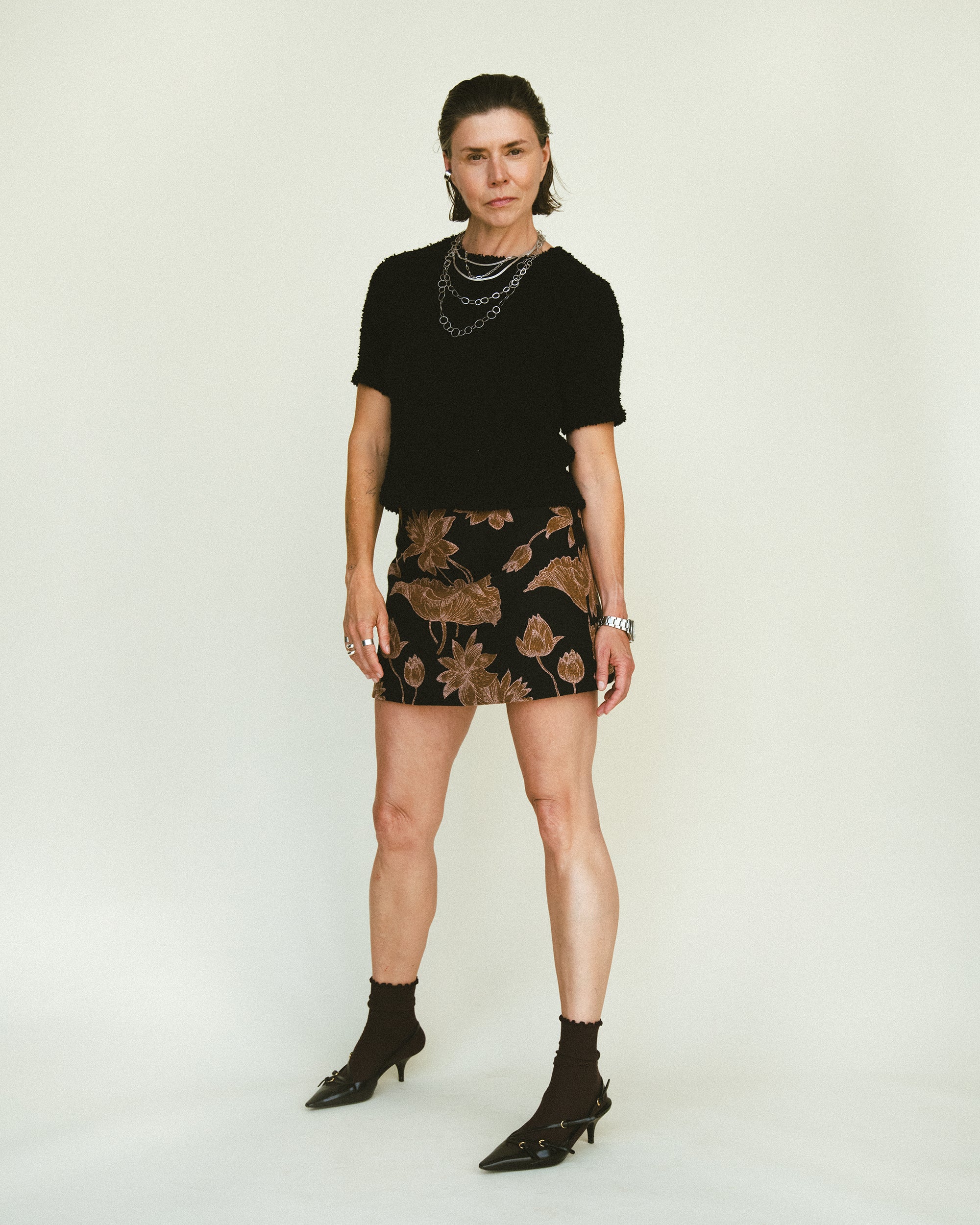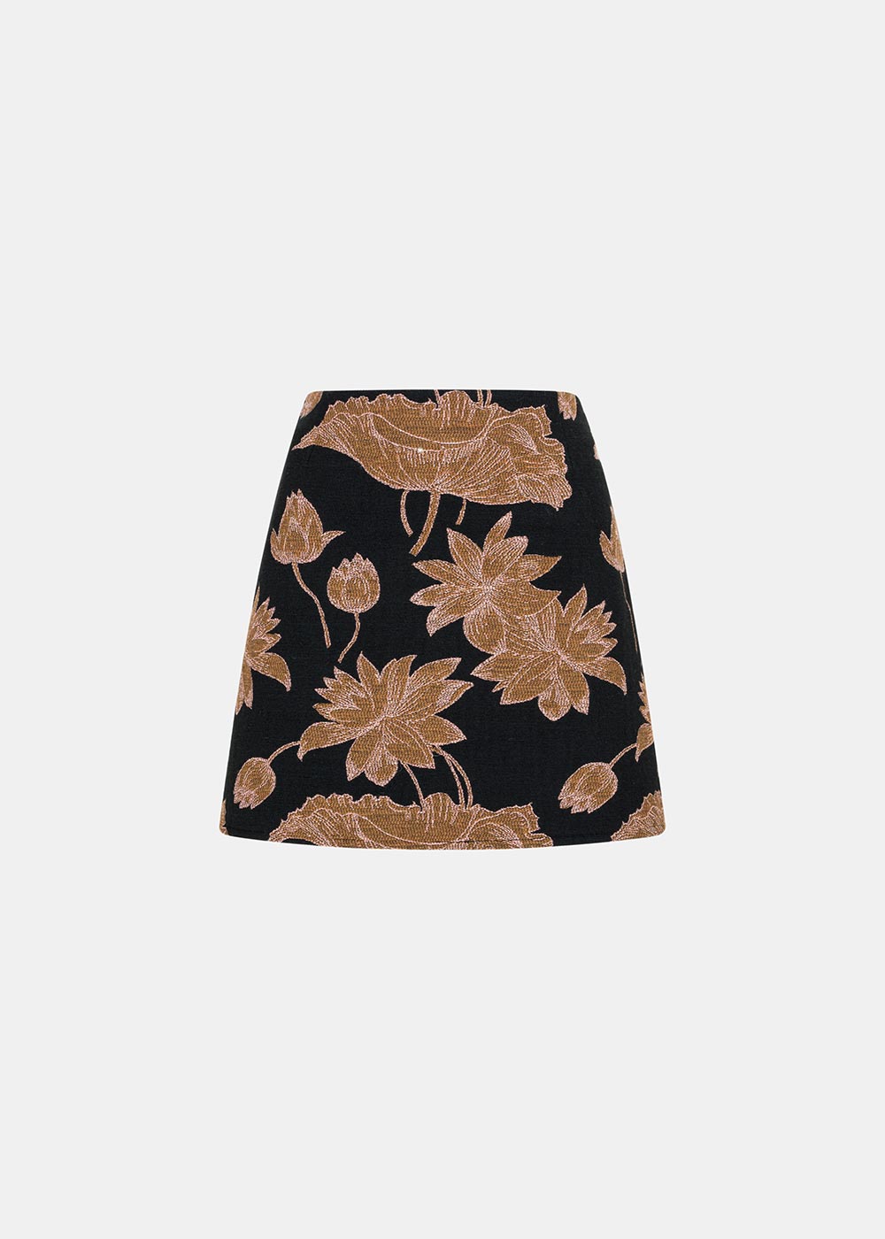 Another version of our favourite MEADOW, whose minimalist cut and original jacquard fabric with a floral motif make it perfect for everyday outfits as well as more elegant ones. It all depends on how and with what you combine it. Pair it with a basic black T-shirt, PALM jumper, trainers or loafers to create a casual look for work, university or lunch with friends. Wear it with the LILY bodysuit and ballet flats for an ultra-feminine look. For a more elegant version, wear it with a BOUCLE top, high-heeled shoes and a MONTANA jacket, which was created to match MEADOW from the same quality fabric.