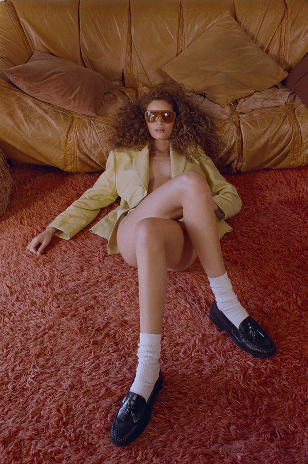 What you see is a girl in her natural habitat. Everything that surrounds her is curated by hand, shaped by every memory and trip, her own creations. A gramophone with her favourite vinyls playing, a keyboard, speakers that remember the 70s in Japan. Candles, incense, a variety of objects.