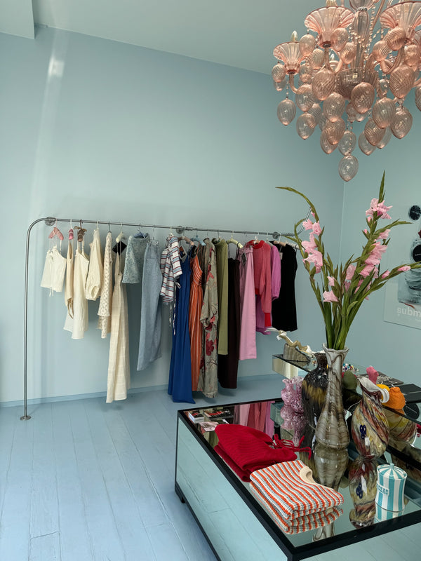Vision partagée avec Submission Beauty - Avec les filles de Submission Beauty, une marque produisant des paillettes à base de plantes, nous avons eu l'idée de rendre nos vêtements disponibles dans leur boutique de Los Angeles pendant quatre mois (de mai à septembre). C'est particulièrement important pour nous car nous partageons une vision similaire de gestion de la marque de manière durable, en réduisant l'utilisation du plastique dans la production.