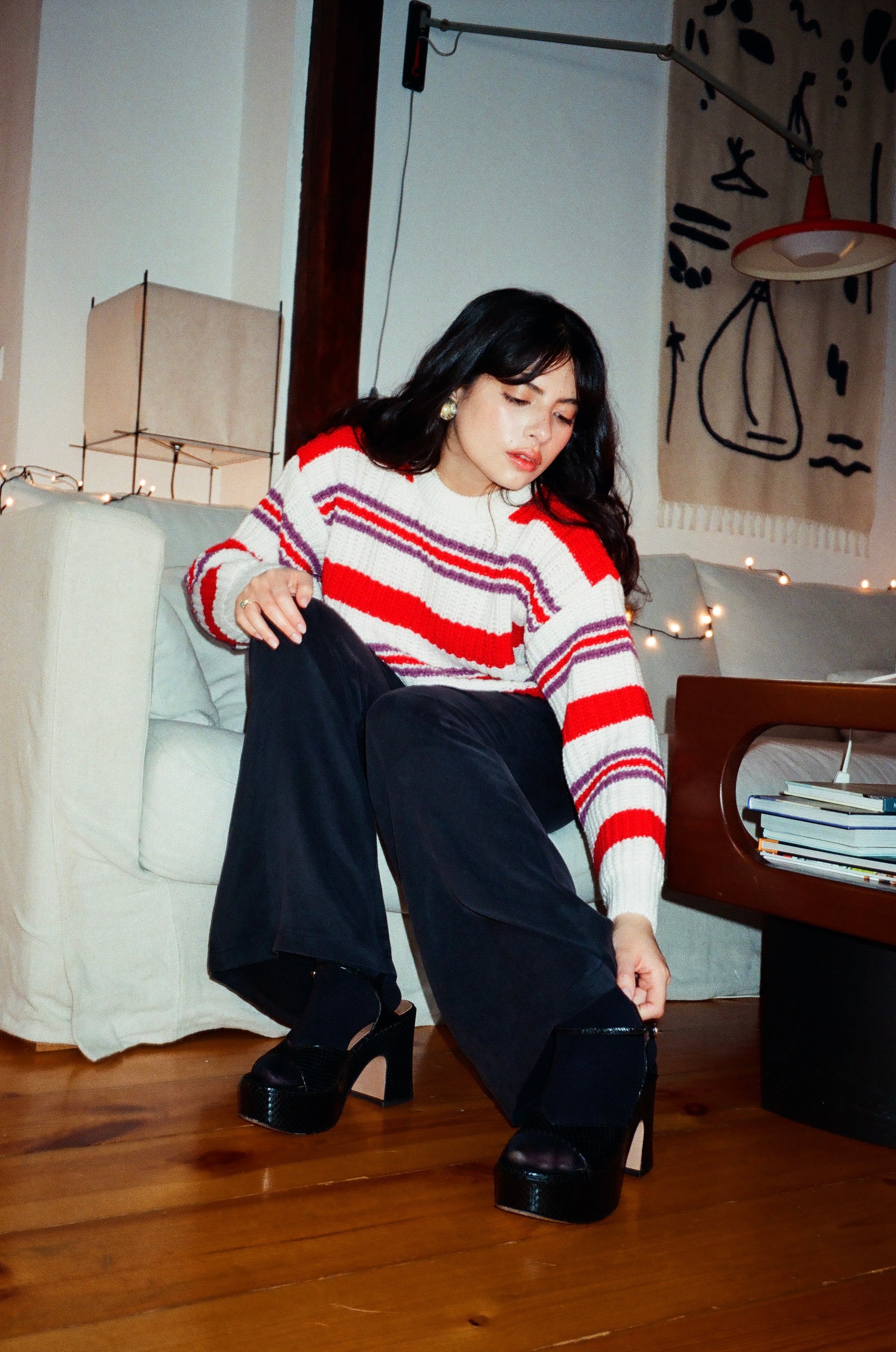 Le pull ONCE revient dans une nouvelle version– même coupe, mais cette fois dans des rayures colorées qui apporteront du caractère et du style à ta tenue ! Le fil de laine épais offre une texture marquée tout en garantissant chaleur et confort. Le pull présente une encolure ronde, une coupe ample, des épaules tombantes et des finitions côtelées. Sa longueur s’accorde parfaitement avec un pantalon taille moyenne ou haute. Porte-le avec ton jean préféré, comme le modèle SEVENTEEN, ou avec la jupe ZING ou le modèle bordeaux MILD pour une tenue tendance et confortable au quotidien.