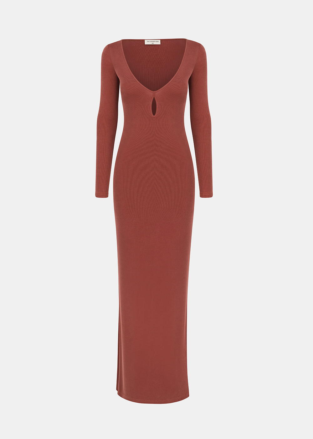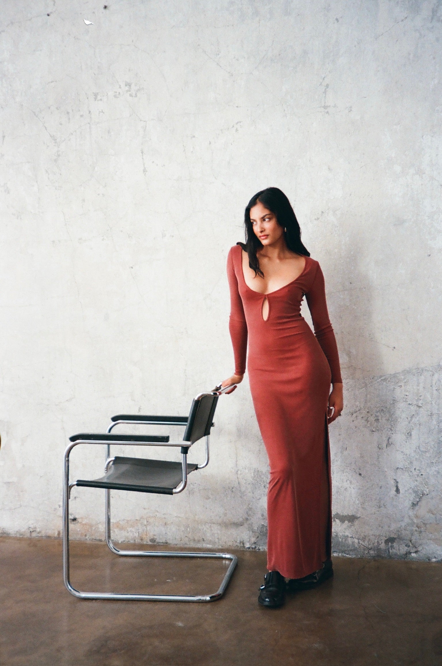 Sukienka maxi Raye to kobieca propozycja w swobodnym, nowoczesnym wydaniu. Uszyta z gładkiej dzianiny z wysoką zawartością wiskozy, miękko układa się na sylwetce i zapewnia komfort przez cały dzień. Odcień ciepłej terakoty podkreśla jej charakter, a głęboki dekolt w serek i zmysłowe wycięcie dodają całości lekkości. Rozporek po lewej stronie pięknie pracuje w ruchu, subtelnie eksponując nogę. To idealna baza do warstwowych stylizacji- w chłodniejsze wieczory narzuć na nią naszą kurtkę Caught.