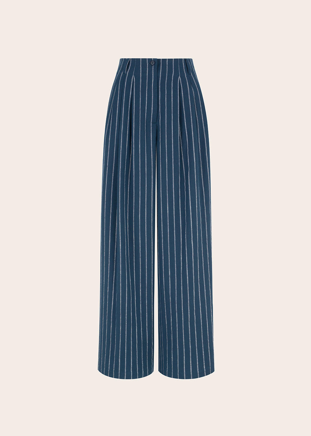 JIL to spodnie z wysokim stanem i szeroką nogawką, które naturalnie łączą wyrazistą formę z naszą ulubioną swobodą. Mieszanka bawełny i lnu sprawia, że świetnie trzymają fason, zachowując przy tym surowe, szlachetne wykończenie. Zaszewki przy pasie i subtelny prążek nadają im charakteru, a luźny krój sprawia, że czujesz się w nich po prostu dobrze. To baza, która zostaje w szafie na lata i pasuje do wszystkiego.Zestaw je z koszulą TANGO– ten duet bez wysiłku łączy konkretną strukturę materiału z kobiecym wdziękiem.