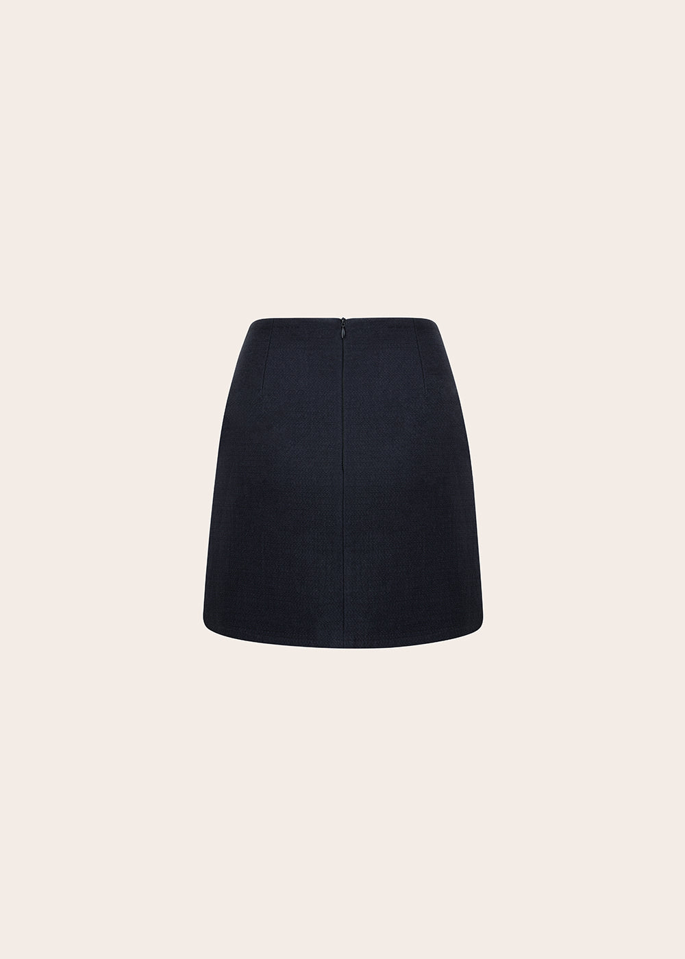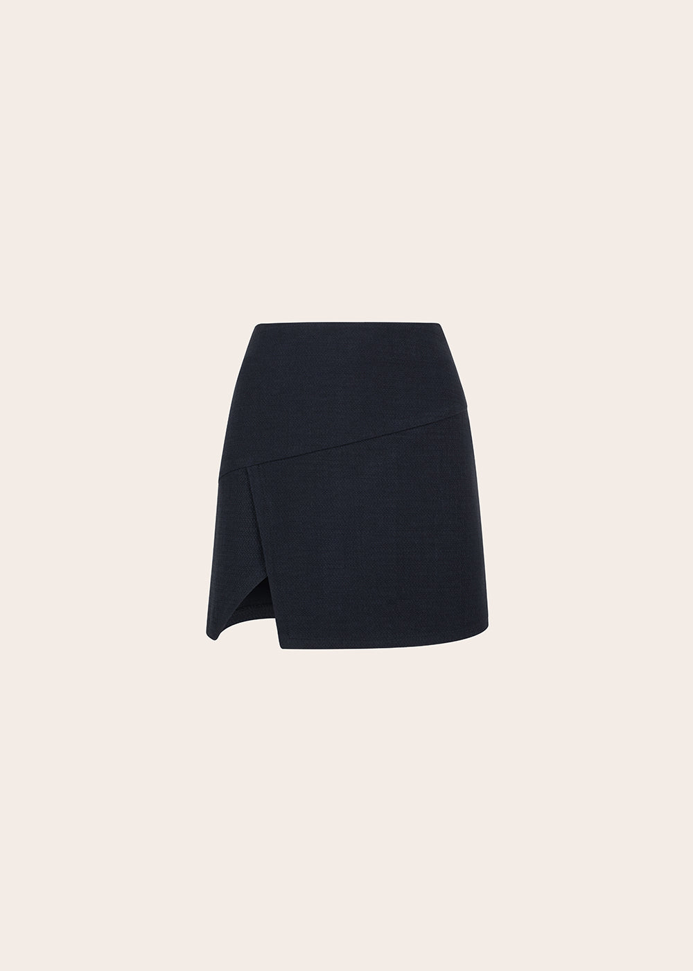 VALLY to mini spódniczka o nowoczesnej, geometrycznej formie. Uszyta z mięsistej bawełny o wyraźnej strukturze. Wyróżnia się asymetryczną zakładką z przodu, która przełamuje klasyczny krój. Tył spódniczki pozostaje gładki, z dyskretnym zapięciem na kryty zamek, co pozwala na precyzyjne dopasowanie do sylwetki. To uniwersalna baza o konkretnej strukturze, idealna do budowania warstwowych stylizacji z kurtką BRETON.