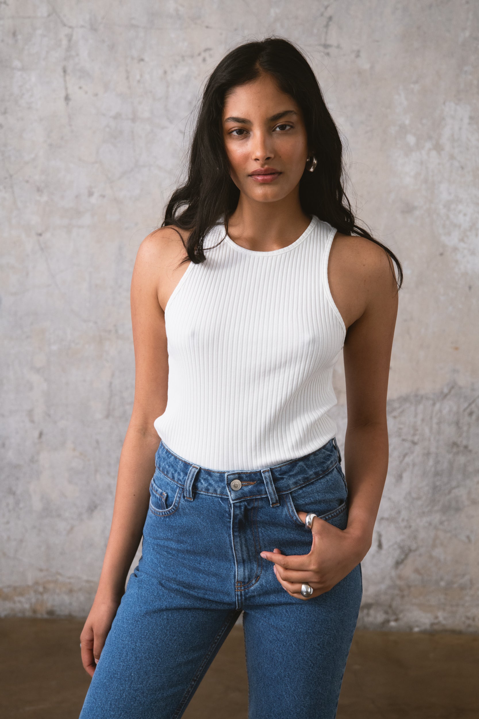 GOOD ONE to klasyczny tank top o prążkowanej strukturze, stanowiący podstawę codziennych stylizacji. Wykonany z miękkiej mieszanki bawełny i modalu, dopasowuje się do sylwetki, dając poczucie „drugiej skóry”. To uniwersalny model, który sprawdza się zarówno jako samodzielna baza w letnich stylizacjach ze spodniami JIL, jak i element warstwowy pod marynarkę TAME.