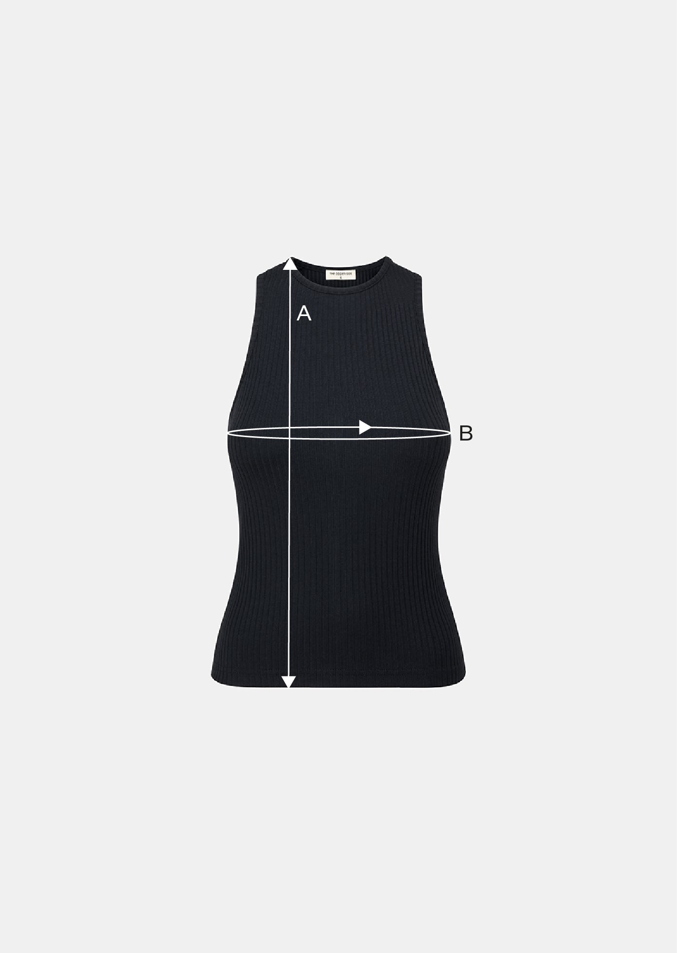 GOOD ONE to klasyczny tank top o prążkowanej strukturze, wykonany z mięsistej dzianiny, łączącej bawełnę i modal. Materiał dobrze dopasowuje się do sylwetki, zachowując swoją formę i miękkość. Dzięki głębokiej czerni oraz charakterystycznej teksturze, top stanowi uniwersalną bazę – od zestawień sportowych po eleganckie duety z marynarką TAME.