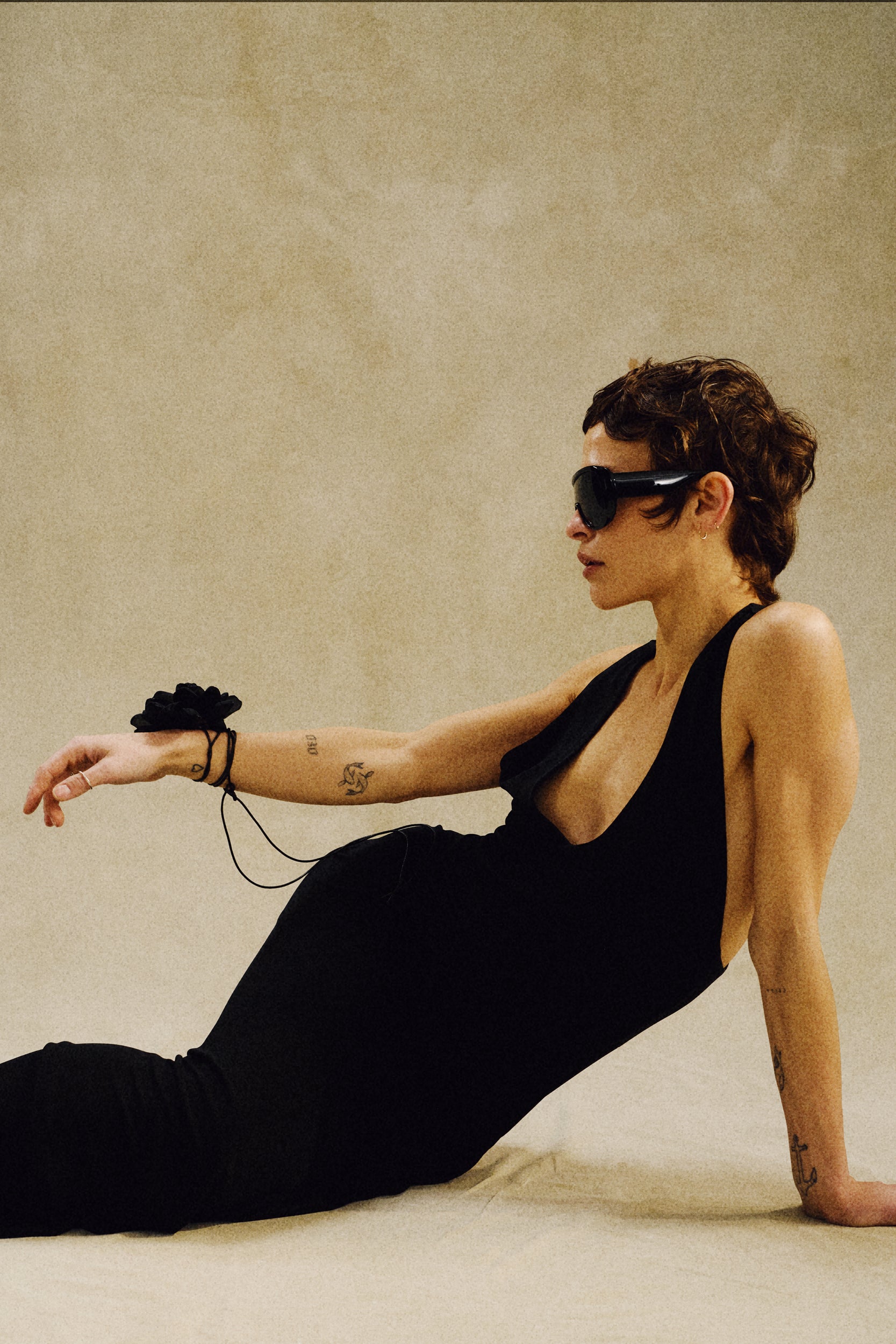 Długa sukienka o minimalistycznej linii. Model przyciąga uwagę głębokim dekoltem w kształcie litery U oraz spektakularnym wycięciem, które głęboko odsłania plecy i łopatki. Wykonana z gęstej, czarnej dzianiny o gładkiej strukturze, miękko układa się na ciele, zapewniając pełną swobodę ruchów. Jej siła tkwi w prostocie i szlachetnych proporcjach, które nadają całości wyrafinowanego charakteru. Noś ją z naszymi klapkami MULE – to zestawienie, które łączy wieczorową elegancję z codziennym komfortem.