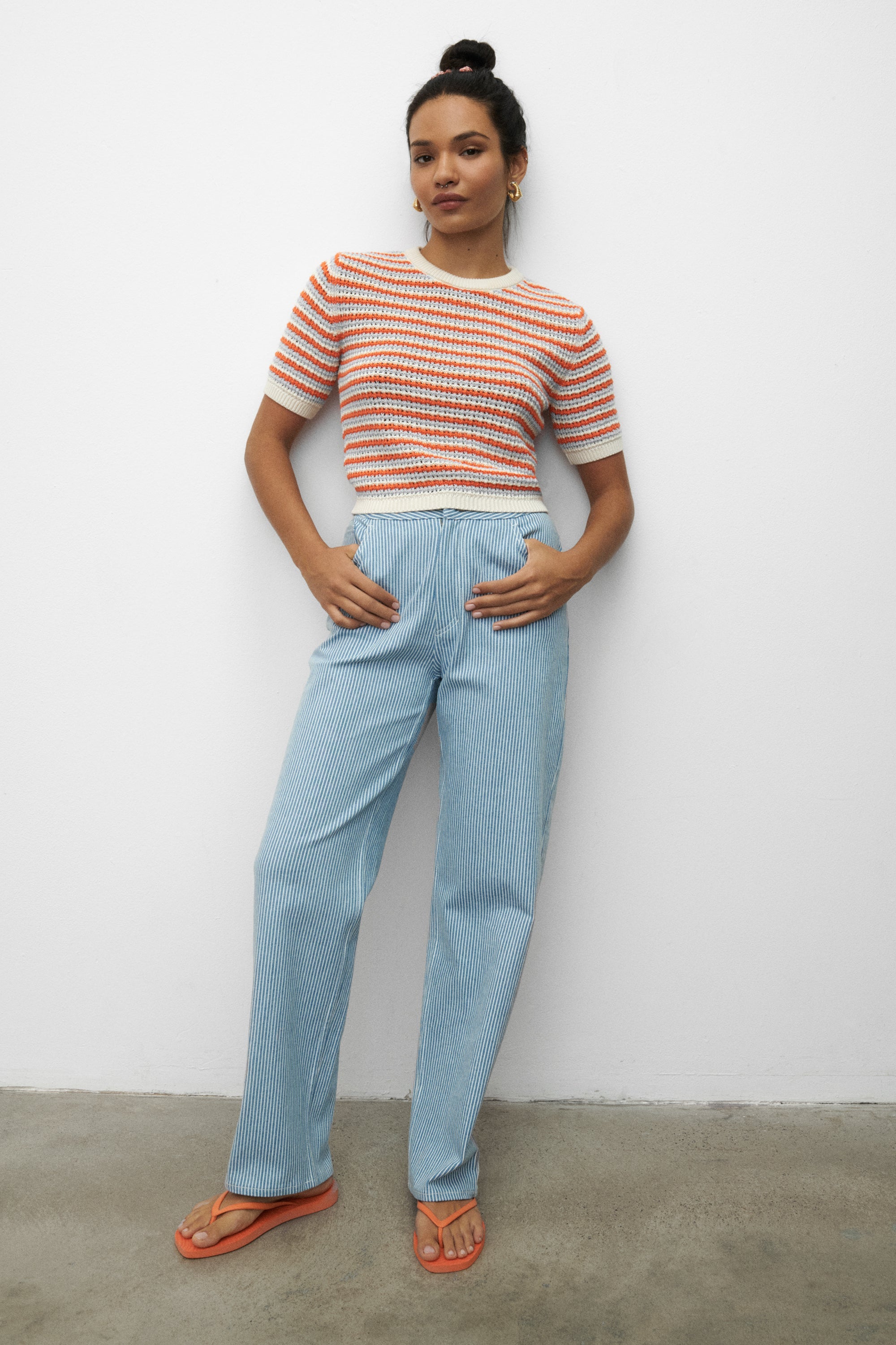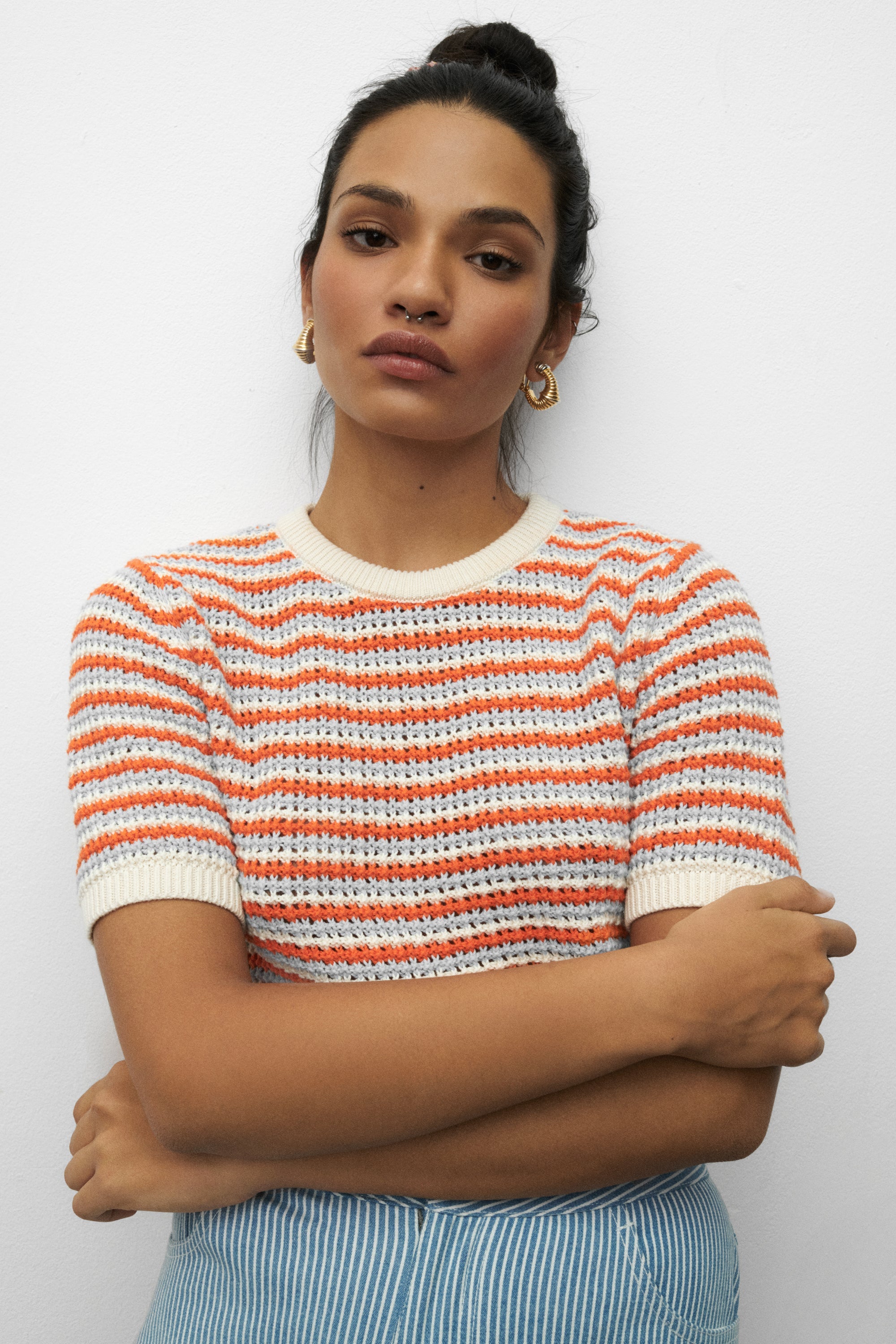 Szydełkowany top z włoskiej przędzy to idealne urozmaicenie każdej letniej stylizacji. Top BAIE wykonany w 100% z bawełny to kwintesencja eklektycznego stylu vintage. Posiada krótkie rękawy i ma nieco krótszą długość, dlatego będzie wyglądał świetnie z wysokim stanem. Top BAIE sprawdzi się zarówno ze spódniczką ALLEY, jak i ulubionymi szortami vintage oraz w chłodniejsze wieczory ze spodniami CHICHI, CARMEN i ASTAIRE lub jeansami KEY.