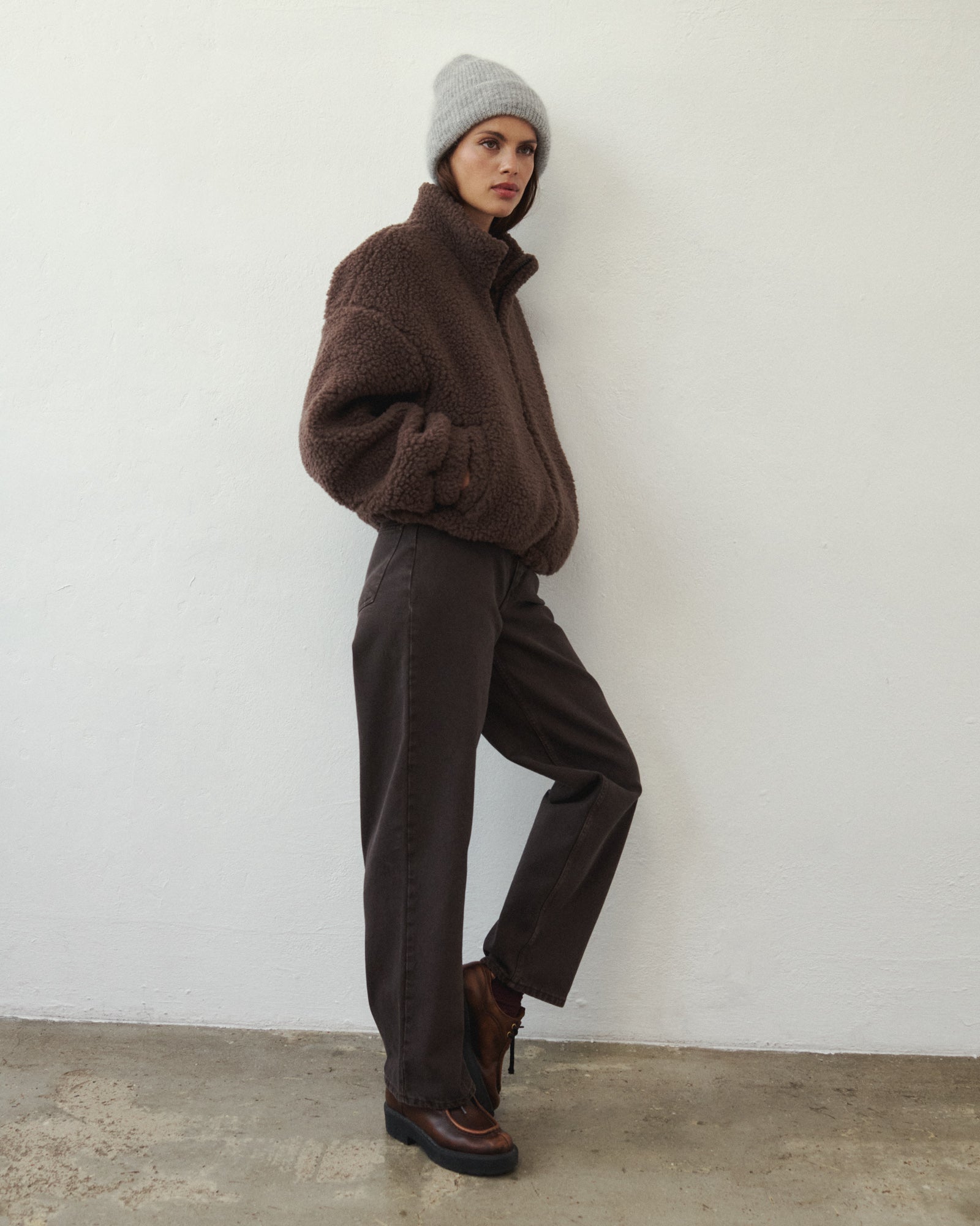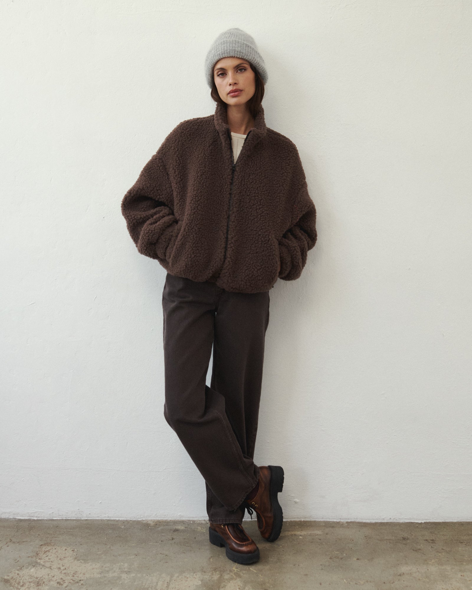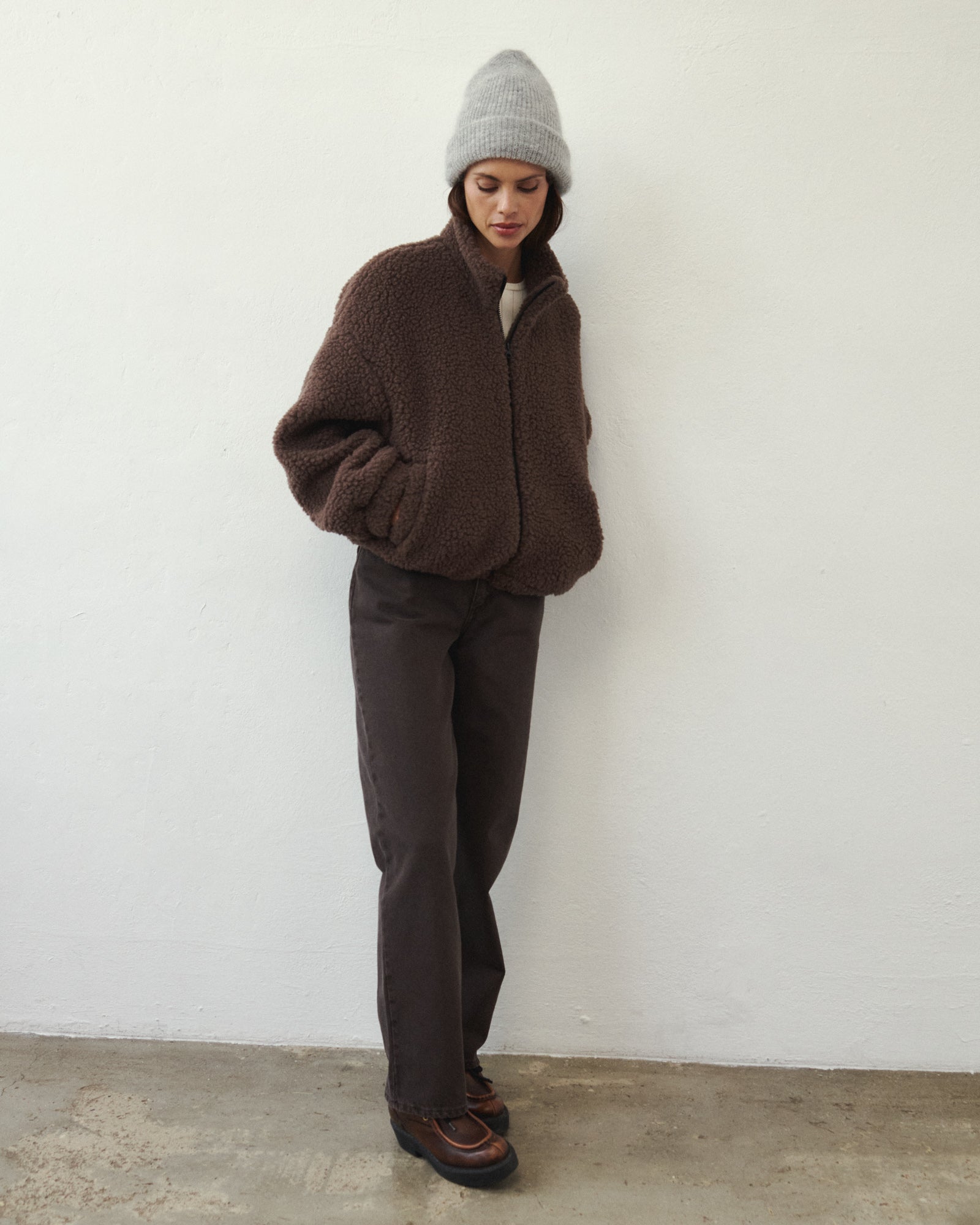 Wełniana kurtka TOS w pięknym kolorze gorzkiej czekolady idealnie wpisuje się w aktualne trendy. To połączenie minimalizmu, komfortu i ponadczasowego stylu. Ma sportowo-casualowy charakter, lekko oversizowy fason i wiskozową podszewkę. Boczne kieszenie, zamek kostkowy oraz możliwość regulacji obwodu pasa stanowią o jej praktyczności i funkcjonalności. Kurtka TOS zapewni Ci ciepło, wygodę w noszeniu i możliwość łatwej stylizacji z innymi elementami garderoby. Noś ją do spodni FLOW/NOMA, jeansów SEVENTEEN lub leginsów ANDY w drodze na swoje ulubione zajęcia sportowe.
