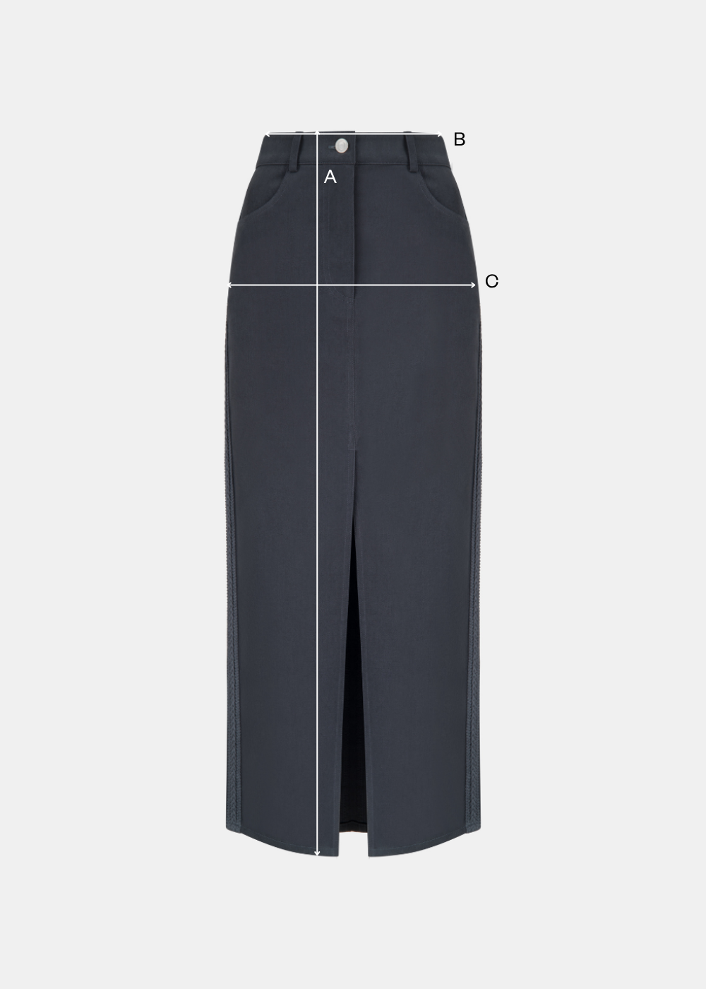 MAIA to spódnica w stylu denimowym o długości maxi. Ma prostą formę, rozporek na przodzie i praktyczne kieszenie na froncie i tyle. Zapinana jest na metalowy zamek i sygnowany, srebrny guzik. Pas posiada funkcjonalne szlufki, dzięki którym możesz dobrać do niej jeden z naszych skórzanych pasków np. SILVO lub CINTO. Pionowe taśmy po bokach to oryginalny akcent dekoracyjny, a miły w dotyku, bawełniany materiał z dodatkiem elastanu to gwarancja komfortu i przyjemności noszenia. Załóż spódnicę MAIA do kozaków lub mokasynów w duecie z jedym z wielu topów lub swetrów z naszej aktualnej kolekcji. Wypróbuj zestawić z kardiganem PAU/GETTY lub longsleevem PISCO/MASSA.