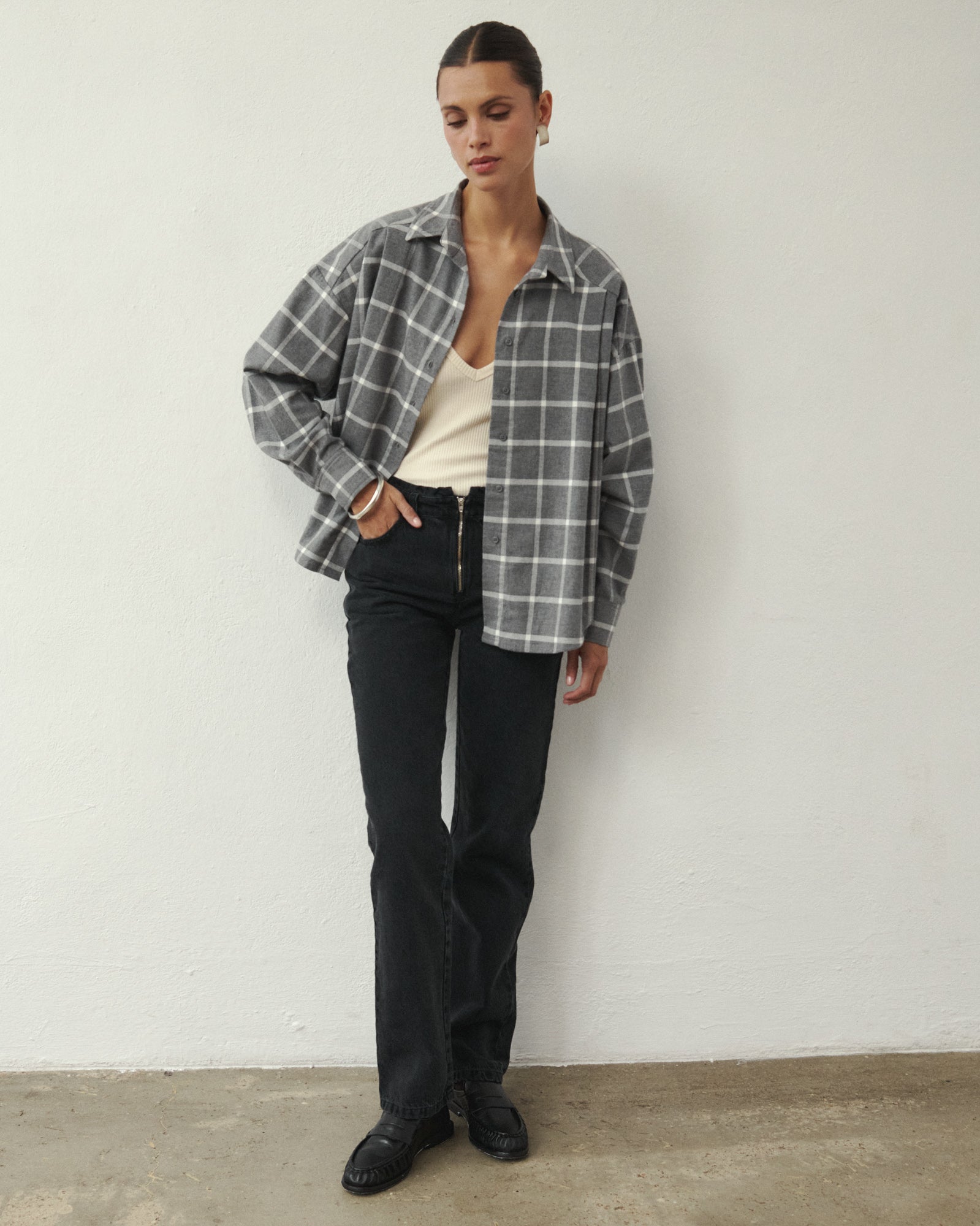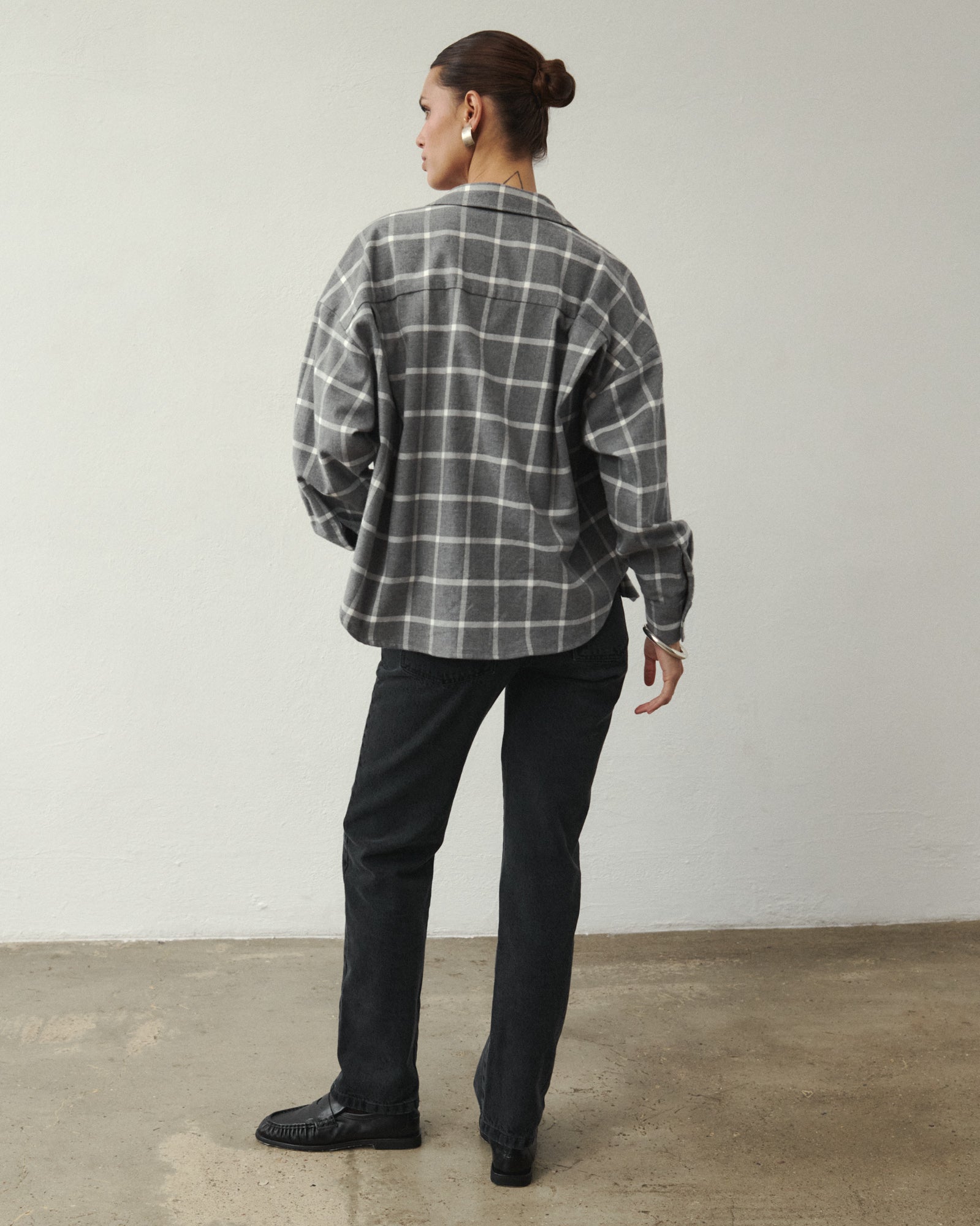 ROSEMARY to idealna jesienno-zimowa koszula łącząca wygodę, jakość i styl! Jest ciepła, miękka i miła w dotyku a dodatkowo klasyczna, uniwersalna i dająca duże możliwości stylizacyjne. Wszystkie te cechy czynią z niej model niemalże doskonały, który Cię ogrzeje, zapewni miłe "otulenie" w chłodniejsze dni jak również ponadczasowy design. Ma oversizowy fason, klasyczny krój z kołnierzem i mankietami oraz uniwersalny kolor szarej flaneli w kratę, wykonanej w 100% z bawełny. Idealna do stylizacji na co dzień. Załóż ją na swój ulubiony t-shirt, top lub body razem z jeansami BOONE lub spodniami GABLE.