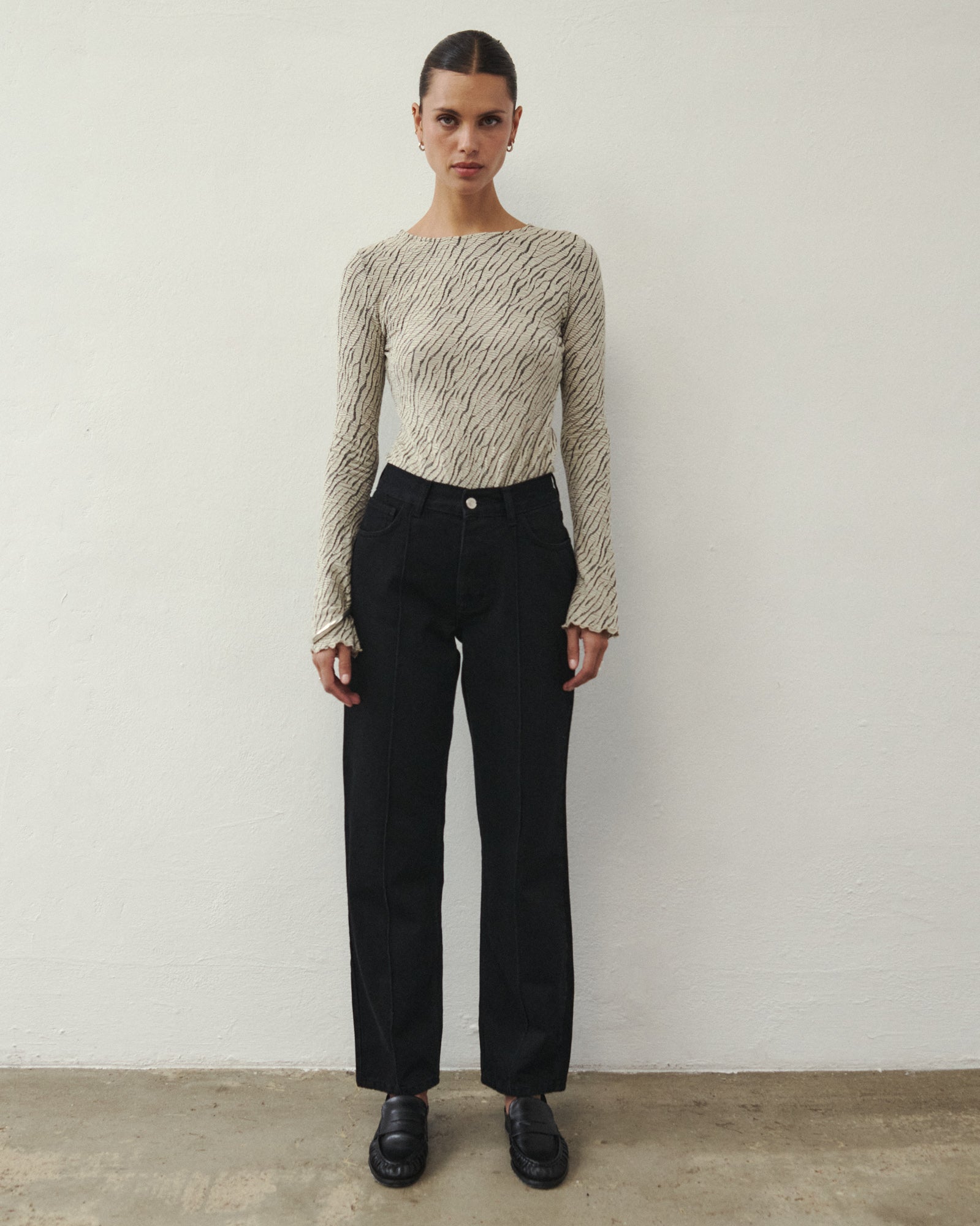 BOONE to nowy model jeansów w naszej ofercie, którego nie może zabraknąć w Twojej garderobie. Fason idealny na niemalże każdą sylwetkę, którą wysmuklą podkreślając talię. Mają wysoki stan, prostą, swobodną nogawkę i rozporek zapinany na guziki. Tym co wyróżnia BOONE są dekoracyjne przeszycia wzdłuż przednich nogawek. Uszyte ze 100% bawełnianego jeansu o gramaturze 12 oz, poddane zostały specjalnemu procesowi dekatyzacji. Klasyczna konstrukcja i uniwersalny kolor nadają im ponadczasowości i sprawiają, że spodnie pasują na wiele okazji. Noś je do koszuli HOLLY, FABIA lub JANICE a także do kamizelki PASCAL i kurki CHERIE. Możliwości zestawiania BOONE jest nieograniczenie wiele!