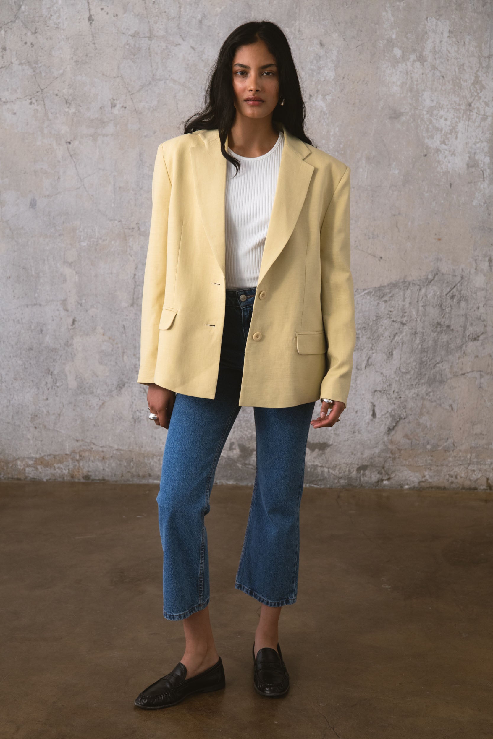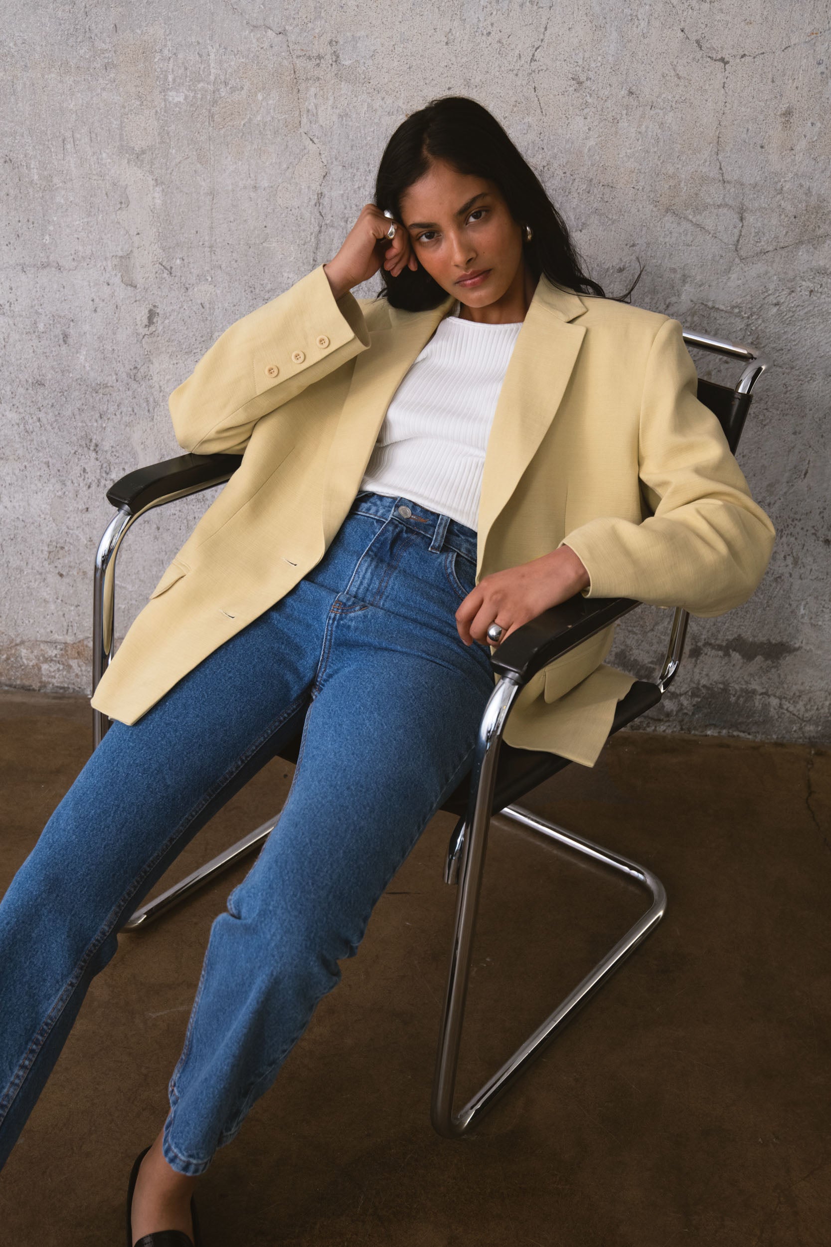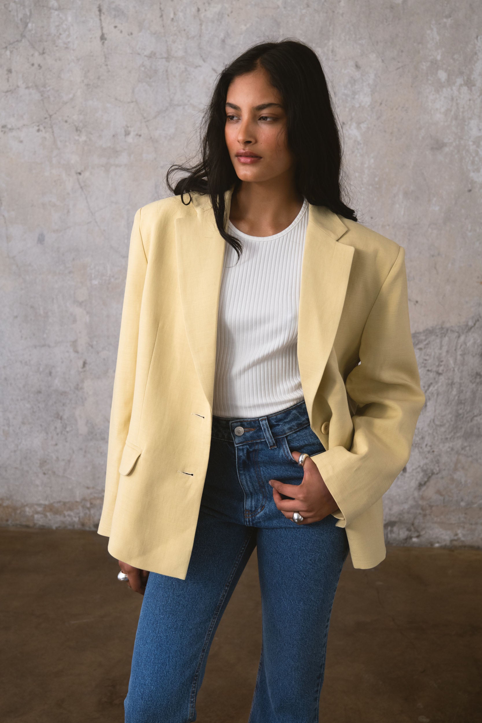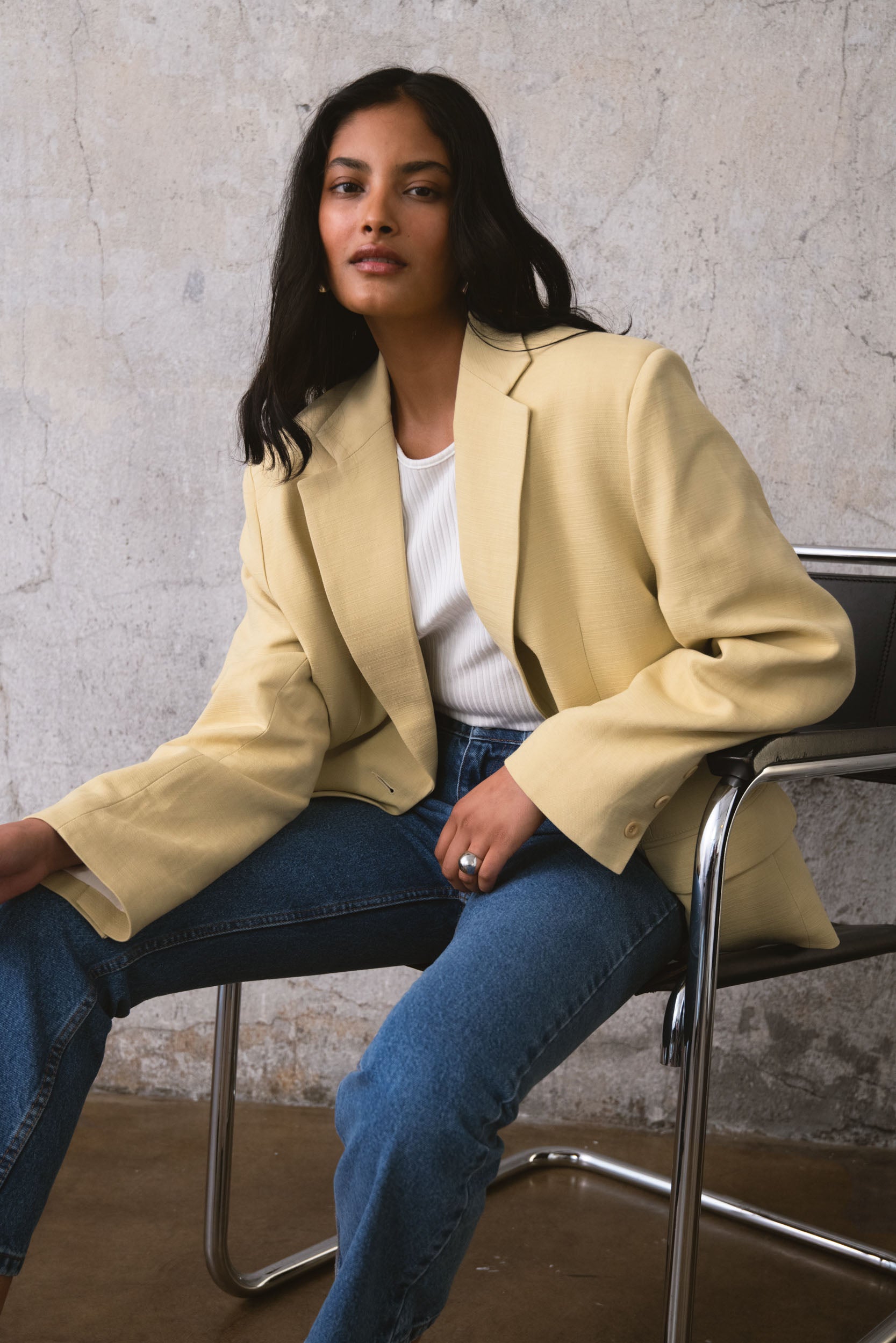 Tame Jacket to nasza interpretacja klasycznej marynarki w odświeżonym, słonecznym wydaniu. Wykonana z lekkiej mieszanki lyocellu, lnu i bawełny, zapewnia swobodę i komfort, których szukasz w cieplejsze dni. Oversizowy krój nadaje jej charakterystycznego dla nas, nieformalnego stylu, a precyzyjne detale podkreślają wysoką jakość wykonania. To energetyczna baza, która ożywi każdą stylizację z naszymi jeansami Polly.